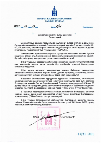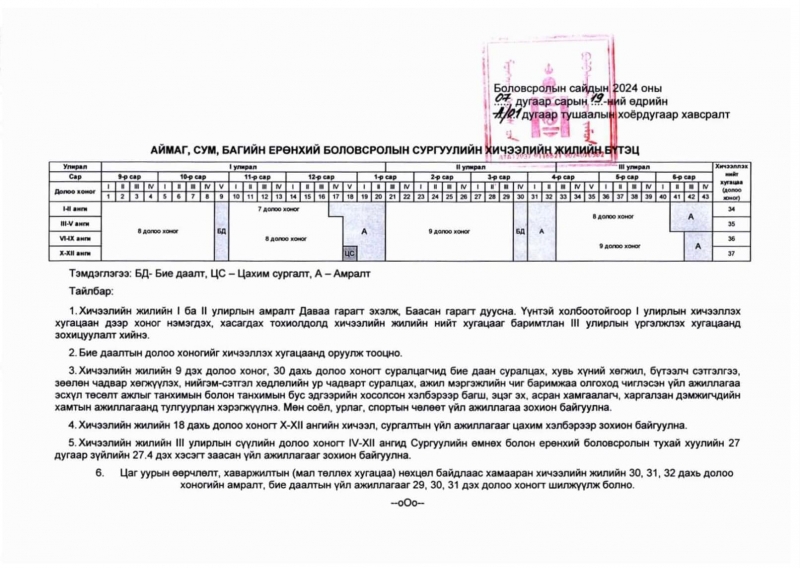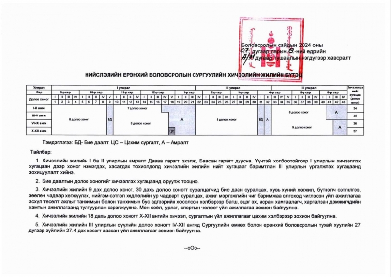 Хичээлийн жилийн бүтцийг шинэчлэн баталлаа.